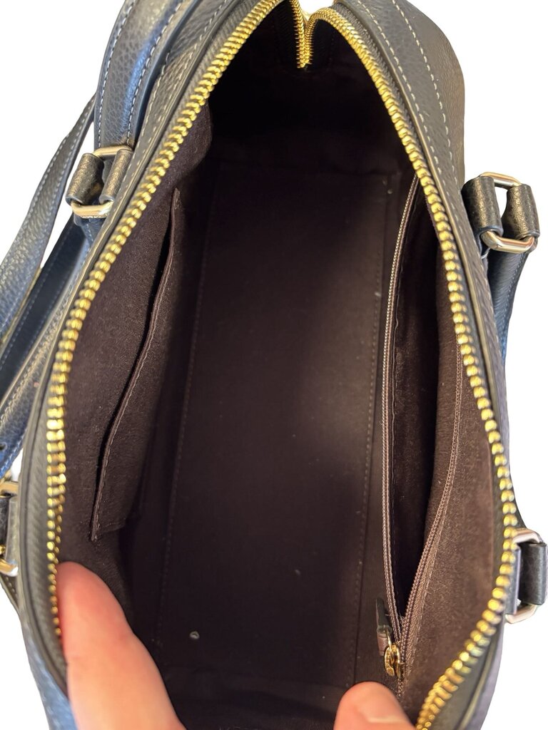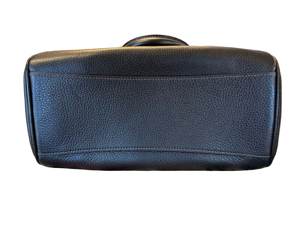 Stylish black leather handbag by Coach, perfect for everyday use. Features a classic design with sturdy handles and a detachable strap for versatility.