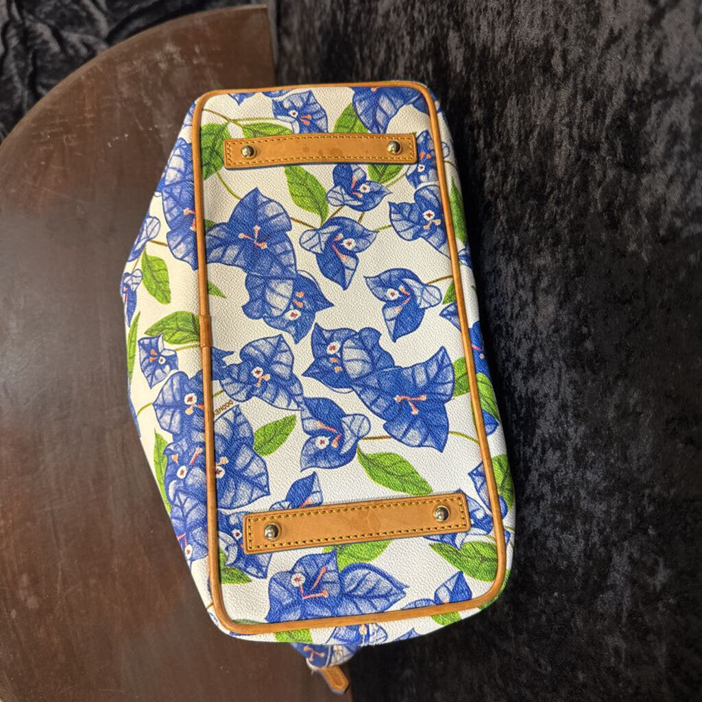 Dooney & Bourke Floral Large Shoulder Tote Women's Designer Handbags White/Blue/Tan