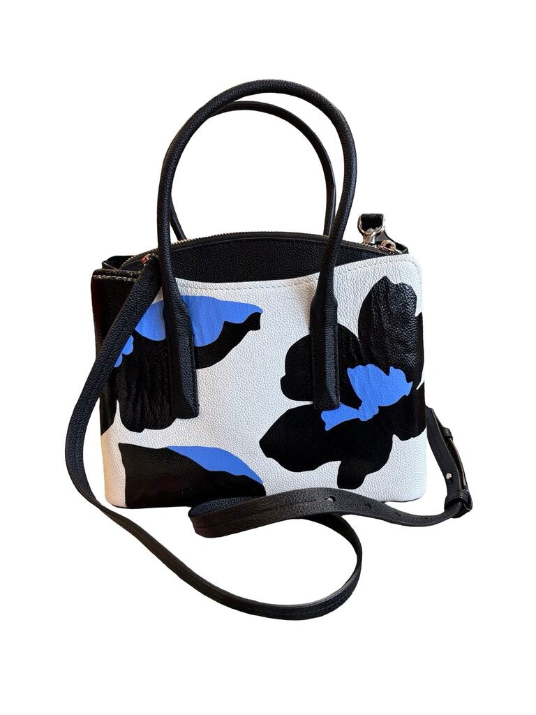 kate spade Floral Print Handbag with Strap Women's Designer Handbags black, white, blue