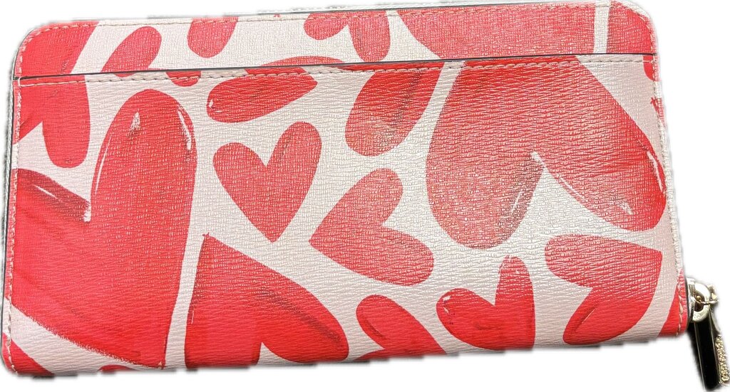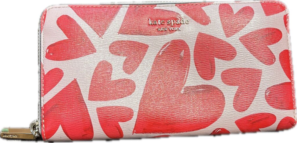 Stylish Kate Spade wallet featuring a vibrant heart print design, perfect for organizing your essentials while making a fashion statement.