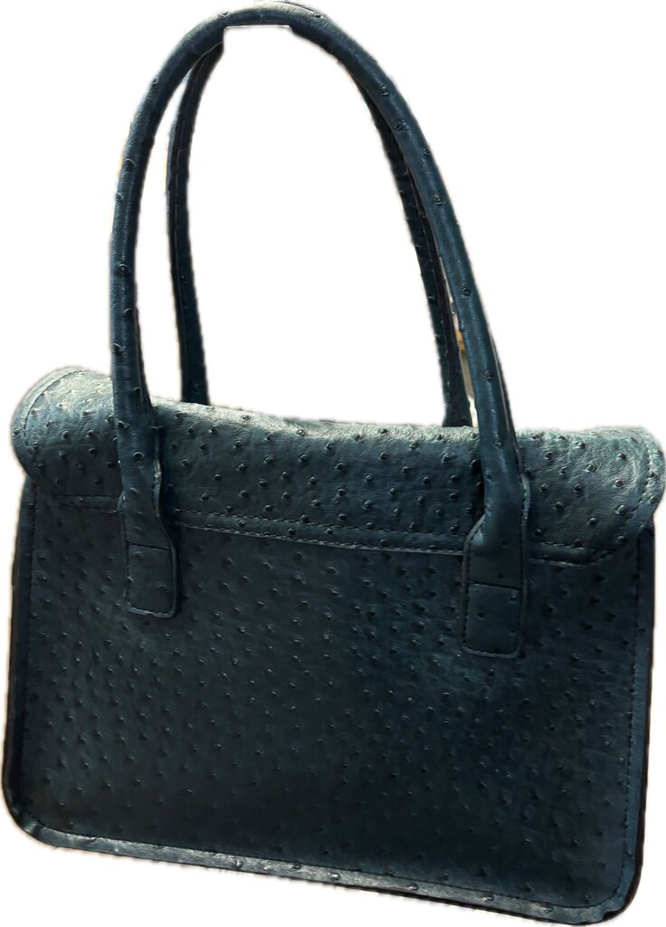Stylish teal handbag made from faux ostrich leather, perfect for everyday use or special occasions.