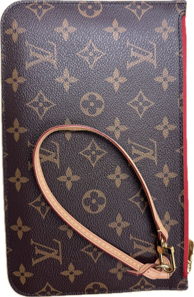louis Vuitton Neverfull Pochette Monogram Women's Designer Handbags Brown/Red