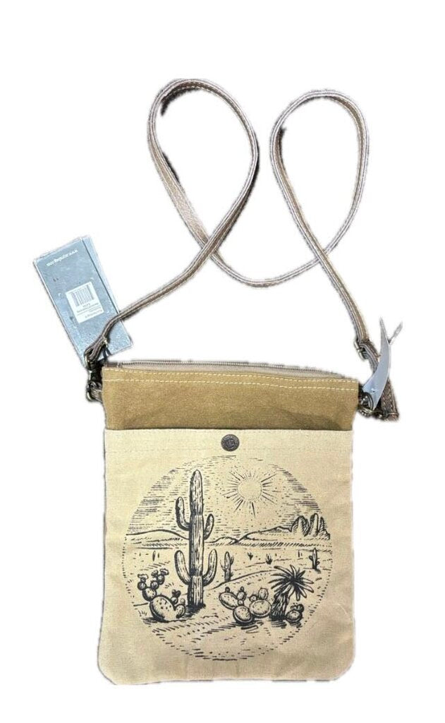 Stylish cactus print crossbody bag perfect for everyday use. Features adjustable strap and zip closure.