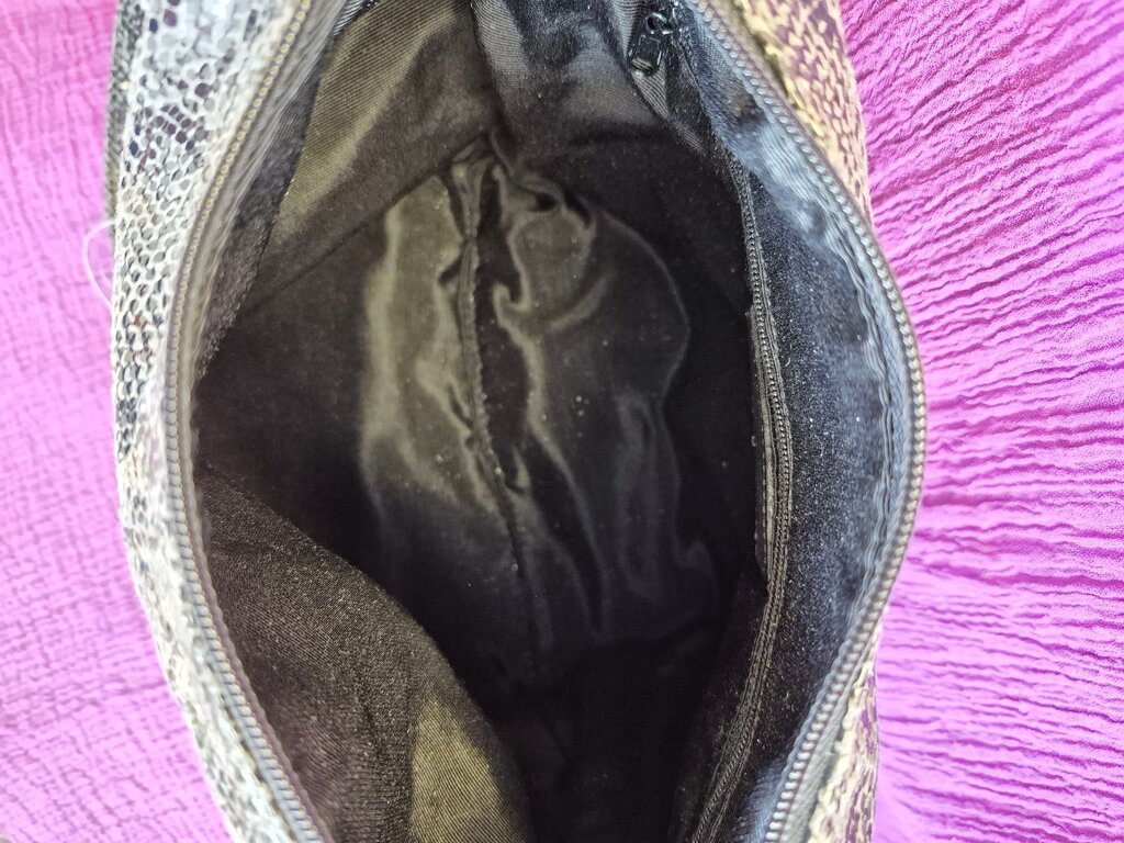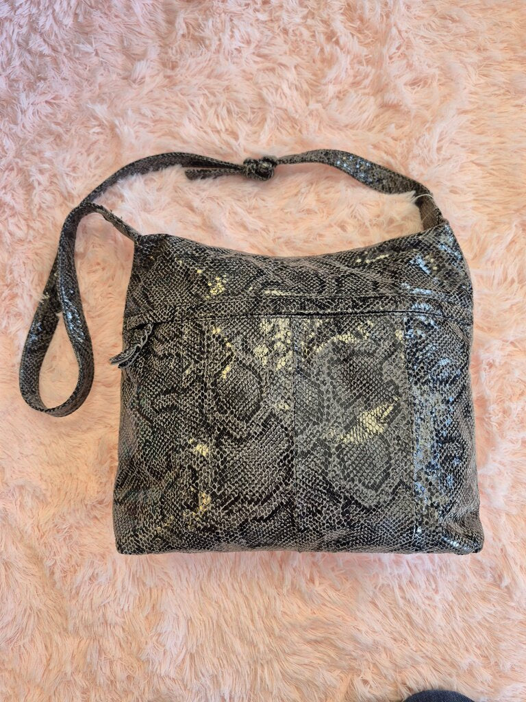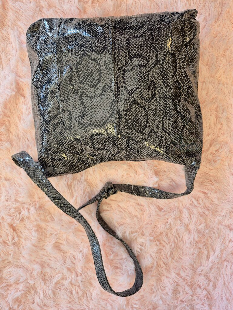 A chic crossbody bag featuring a stunning python print in black and silver, perfect for stylish outings.
