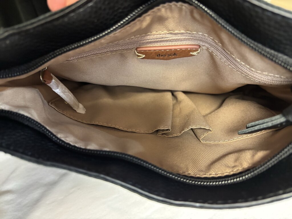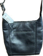 Stylish black leather shoulder bag by The Sak, perfect for everyday use or special occasions.