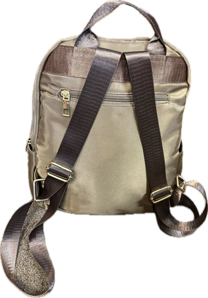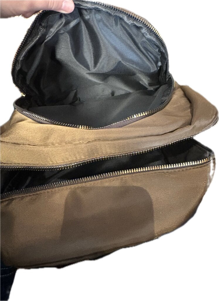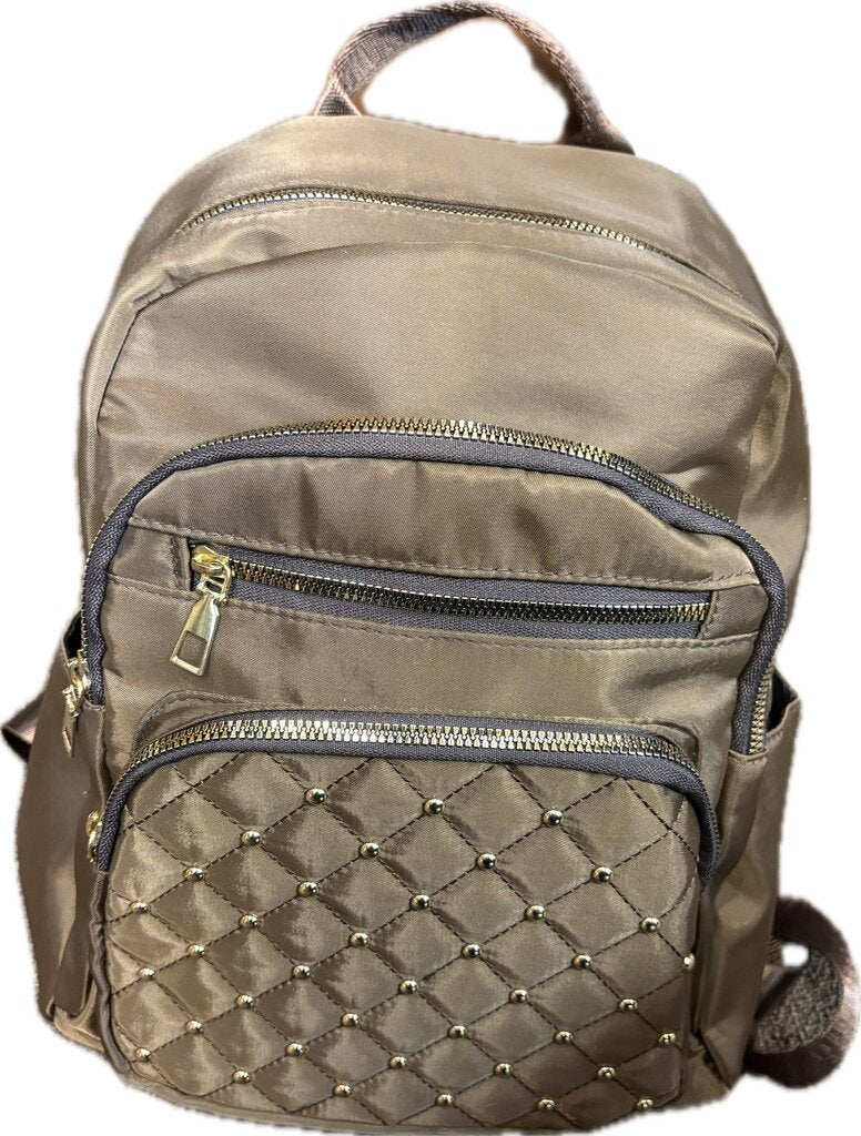 Stylish brown backpack with quilted design and front zip pocket, perfect for daily use and casual outings.