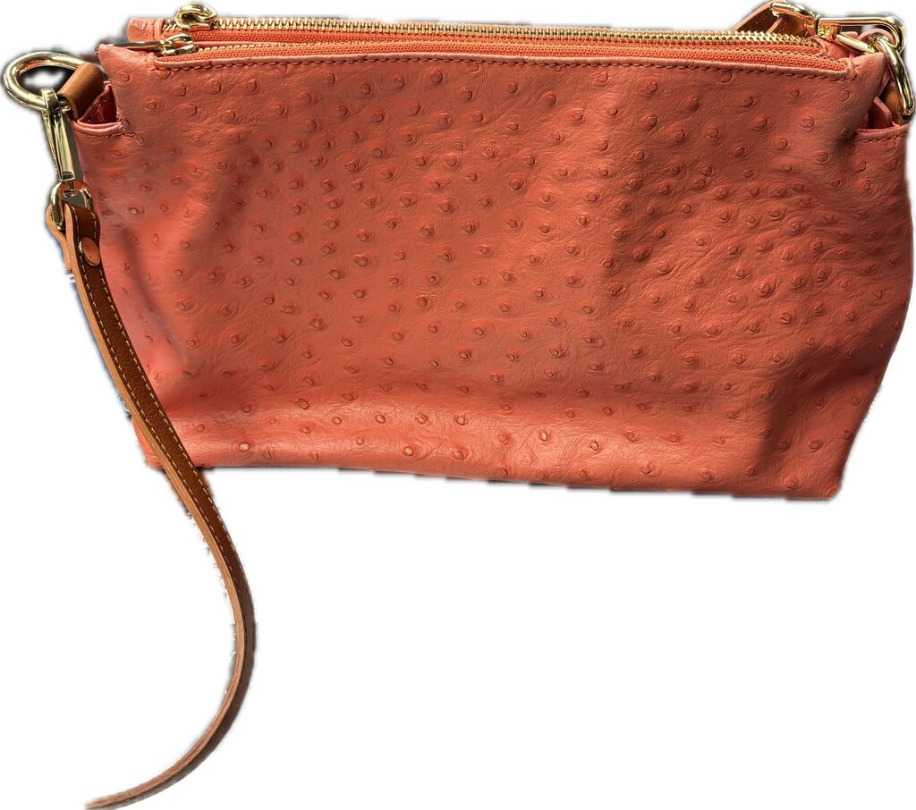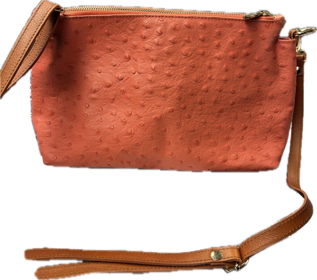 Stylish Valentina handbag made from genuine leather, featuring a vibrant coral color and a unique dotted texture, perfect for any fashionable woman.