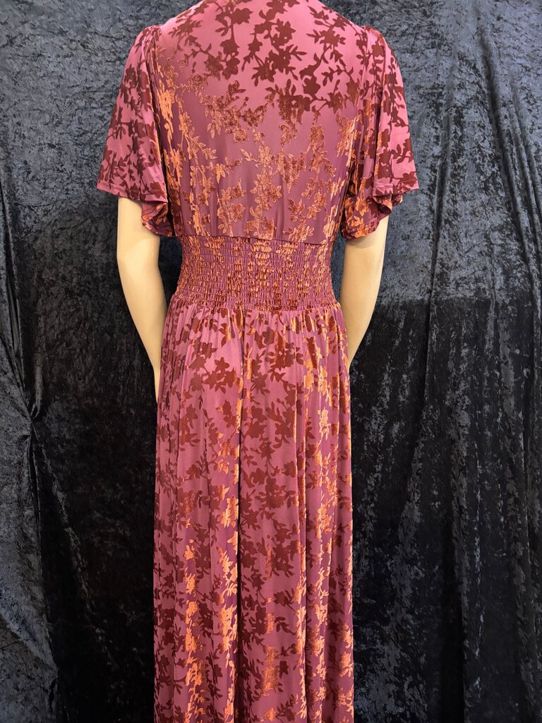 baltic born Floral Print Maxi Dress in Burgundy and Orange Women's Dresses large Burgundy