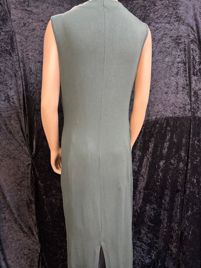 Stylish sleeveless midi dress in a beautiful sage green color, perfect for casual outings or special occasions. Features a flattering fit and elegant design.