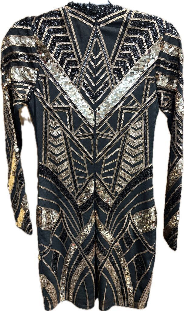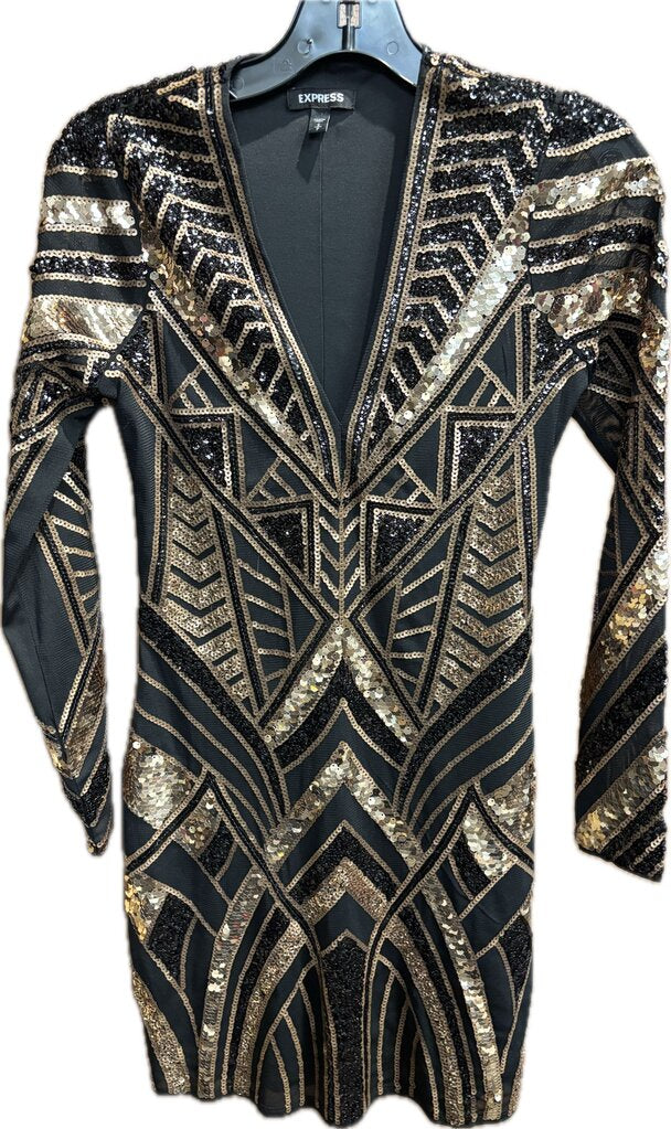 express V-Neck Sequence Long Sleeve Women's Dresses Small Black