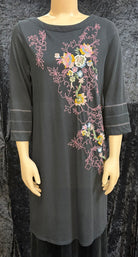 A stylish J.Jill black dress featuring vibrant floral embroidery, perfect for casual or semi-formal occasions.