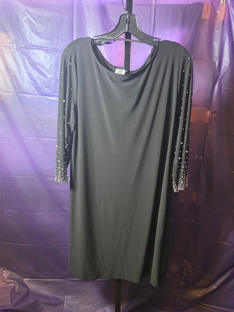 msk Black Dress with Pearls on Sleeves Women's Dresses XL black