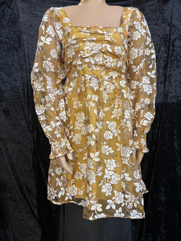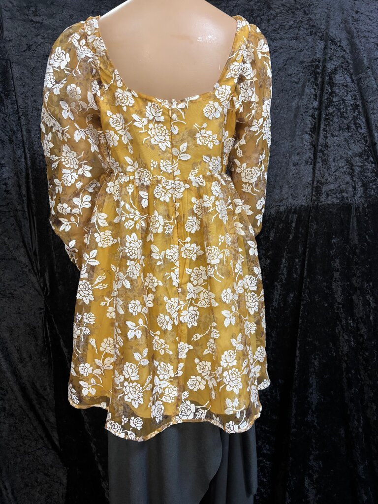 peach love Floral Print Yellow Blouse Women's Dresses Large mustard