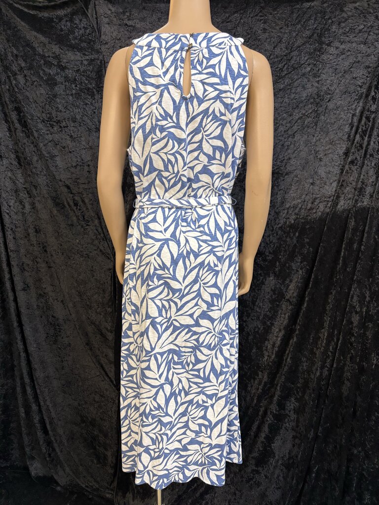 talbots Leaf Print Tie Waist Women's Dresses Extra Large Blue/White