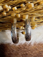 Fun, quirky silver hoops with a 1 1/2" circumference and unique native design.
