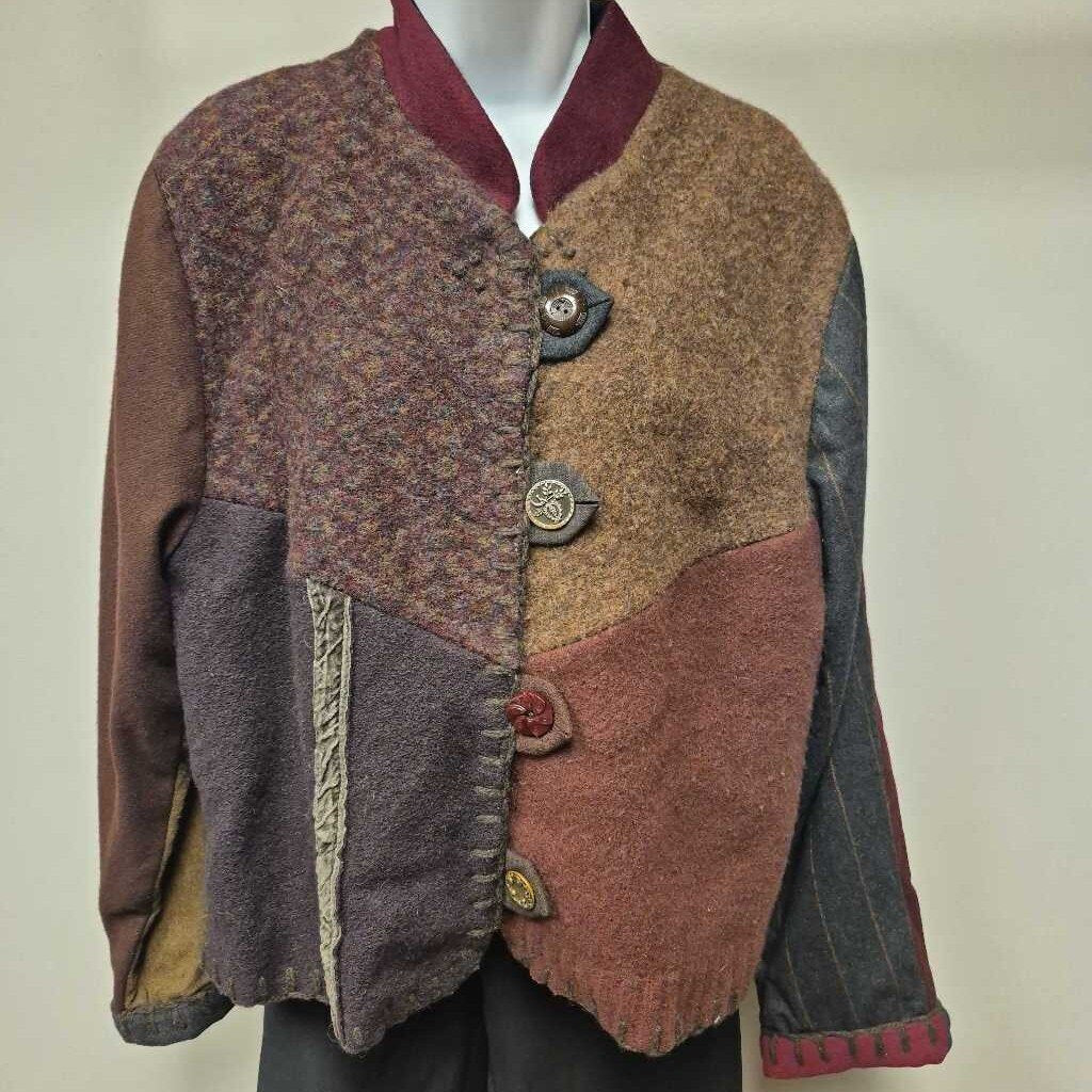 baabaazuzu Wool Coat Women's Jackets L brown tan blue burgundy