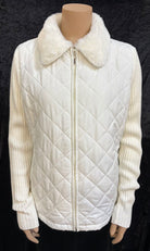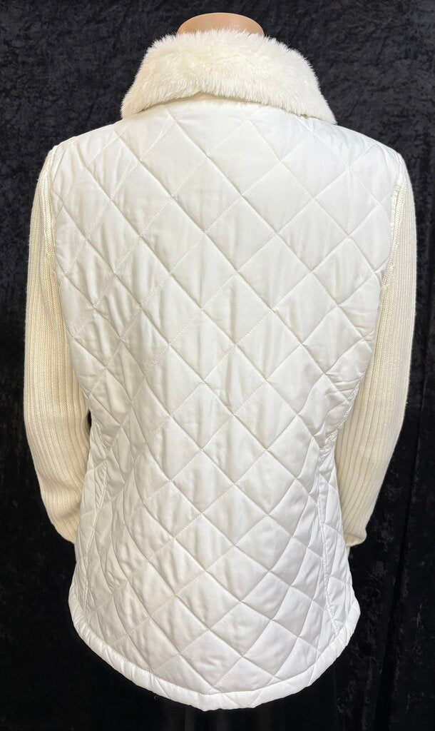 carolyn taylor Faux fur Collar Quilted with knit sleeves Women's Jackets large white