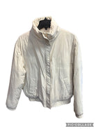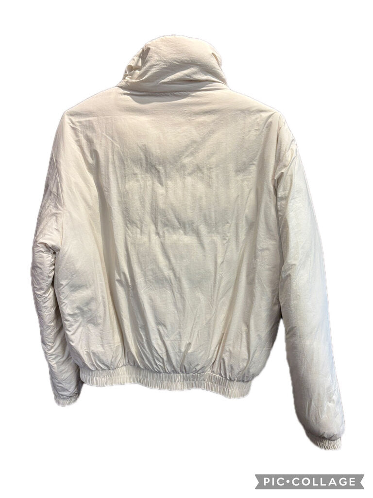 Stylish and cozy white puffer jacket perfect for cold weather. Features a high collar and zip closure for added warmth.