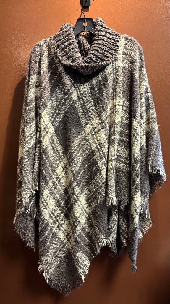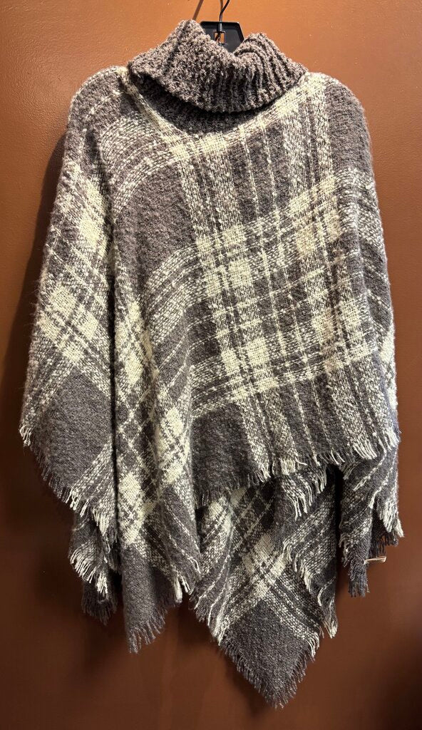 Janice Plaid Turtle Neck Women's Ponchos OS Gray/White