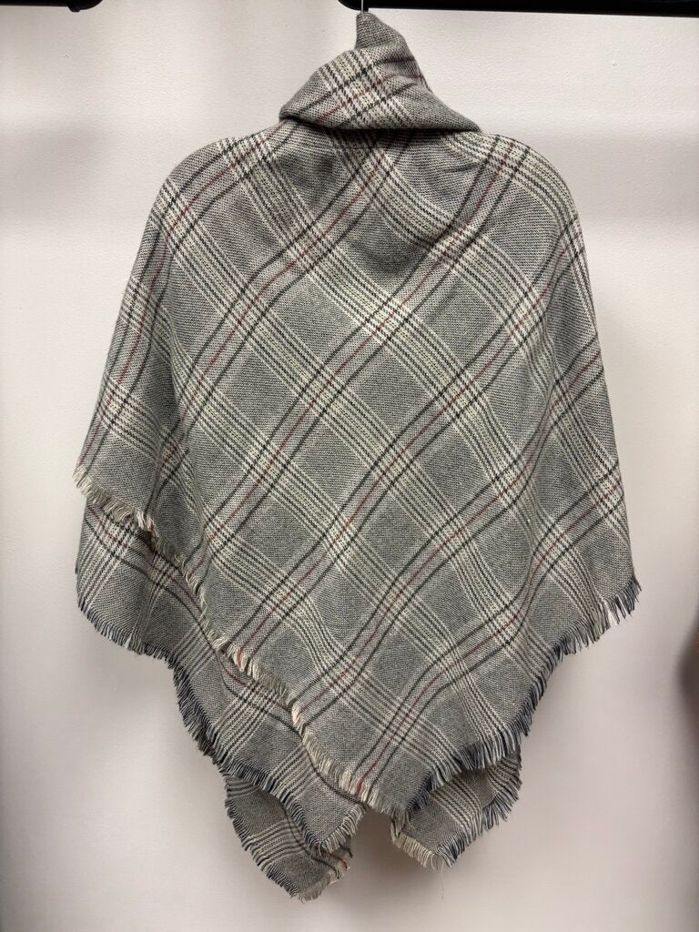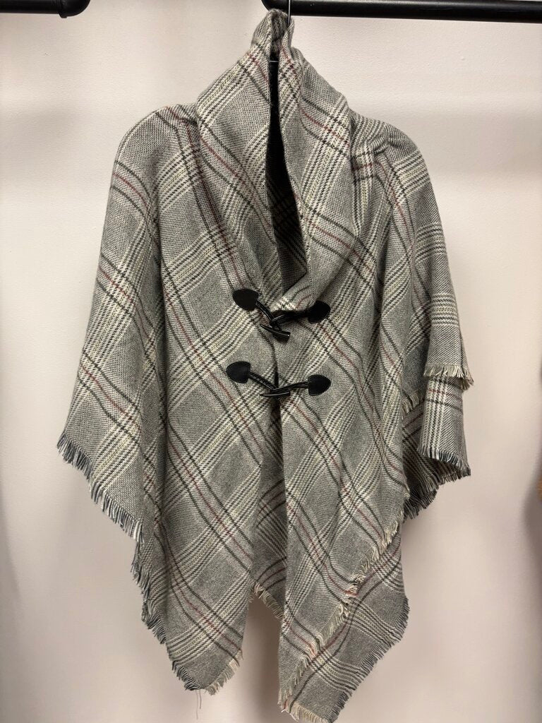 unknown plaid 2 clasp Women's Ponchos OS gray