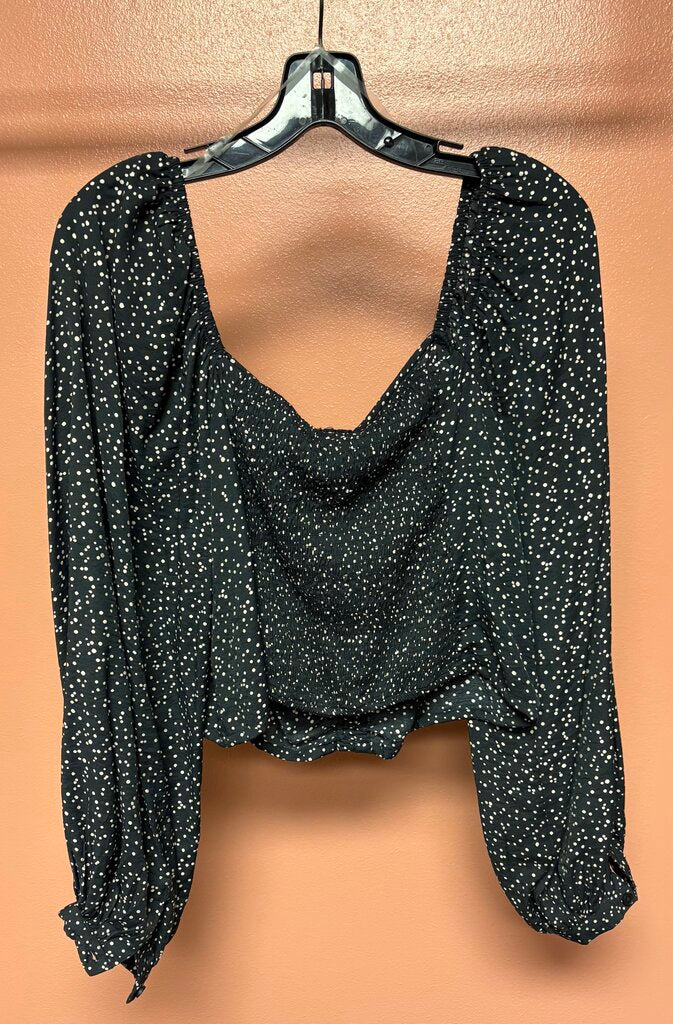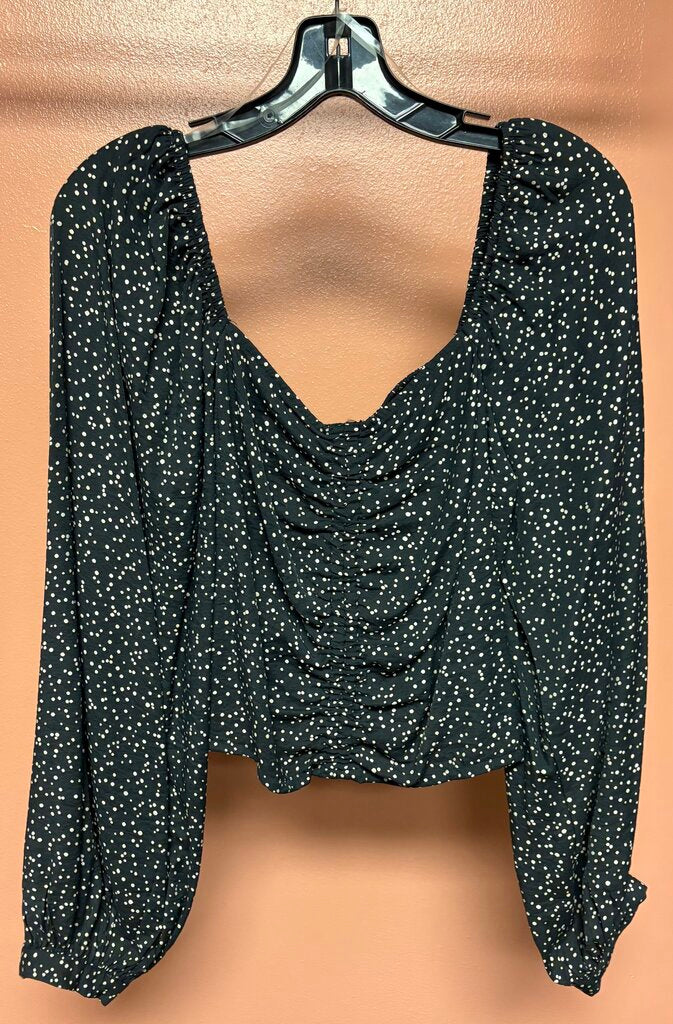 a new day Balloon Sleeve Polka Dot Crop Blouse Women's Shirts M Blk