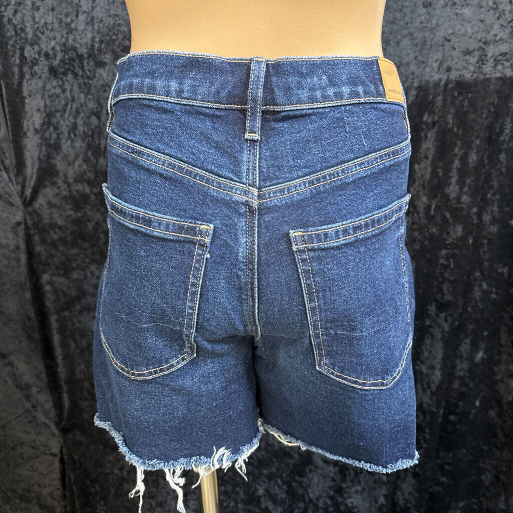 American Eagle Strigid Distressed Bottom Women's Shorts 4 Dark Blue
