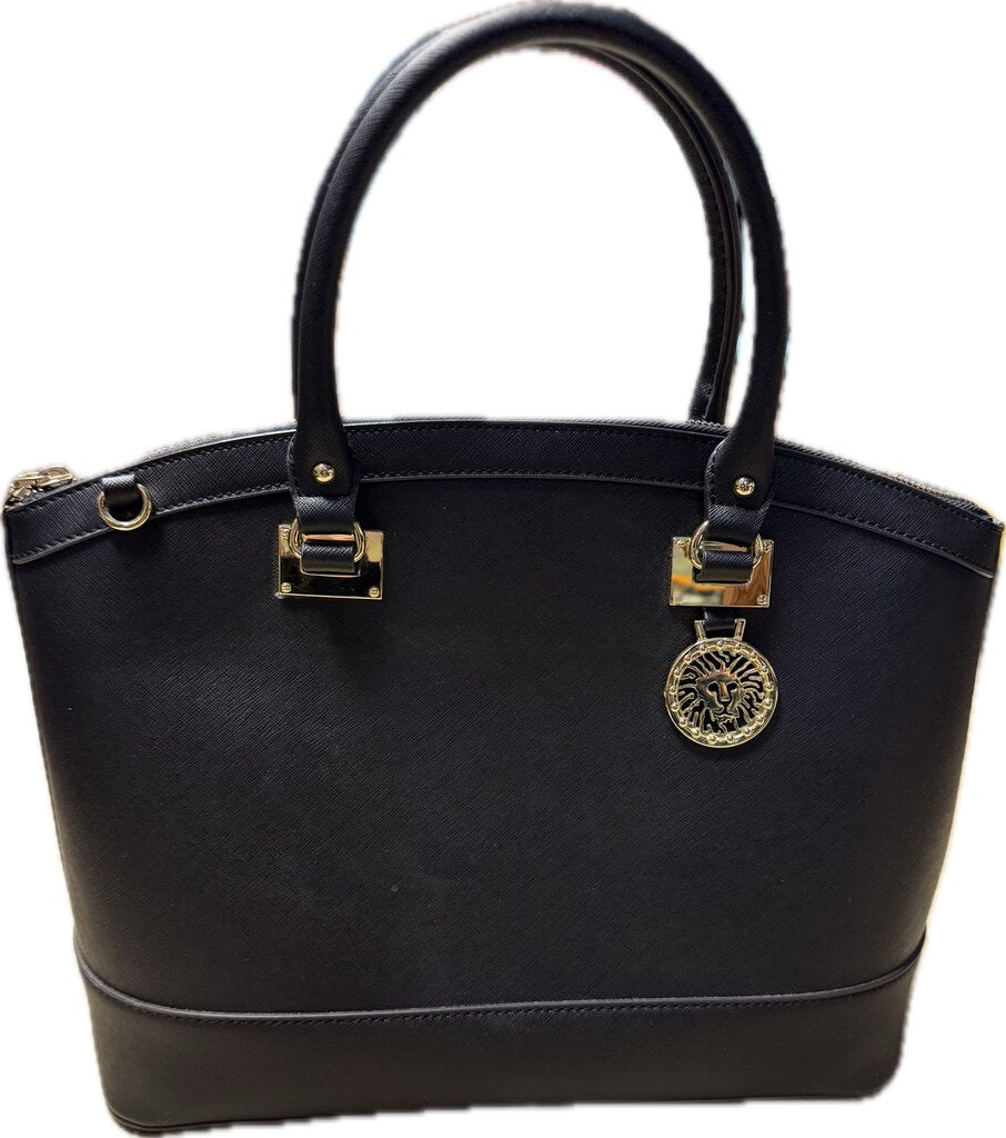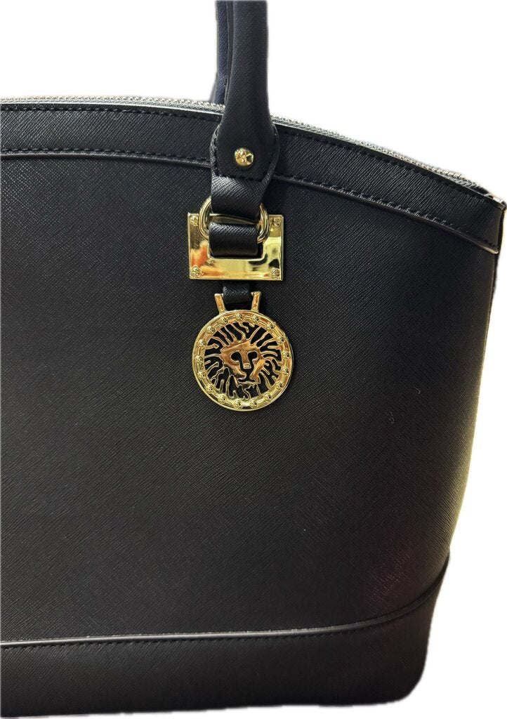Stylish black women's handbag featuring a lion emblem, perfect for everyday use or special occasions.