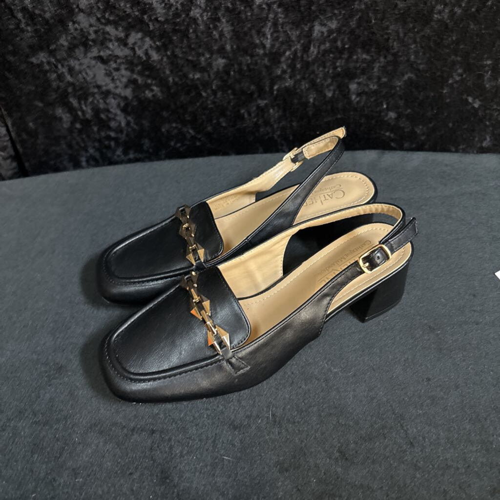 catherine malandrino Heeled Lloafers Women's Shoes 7.5 Black/Gold