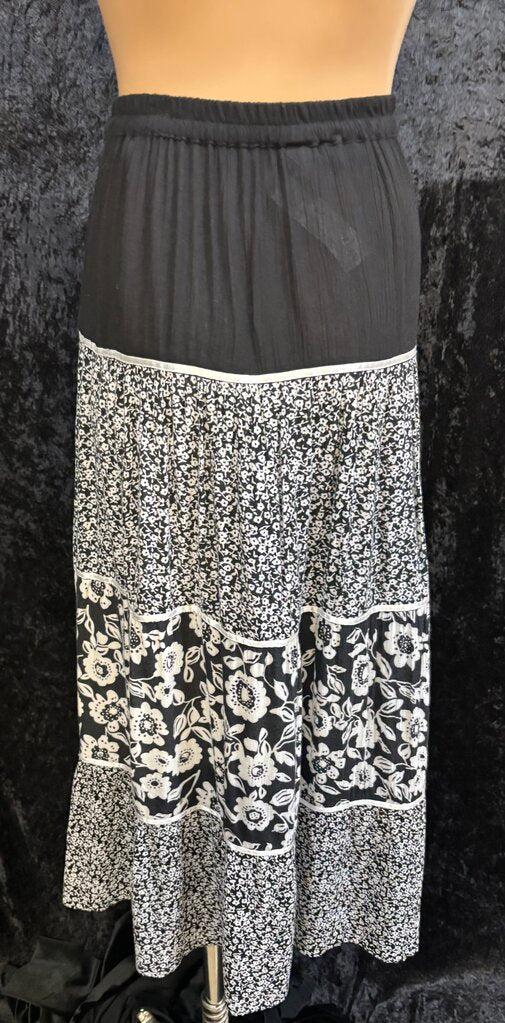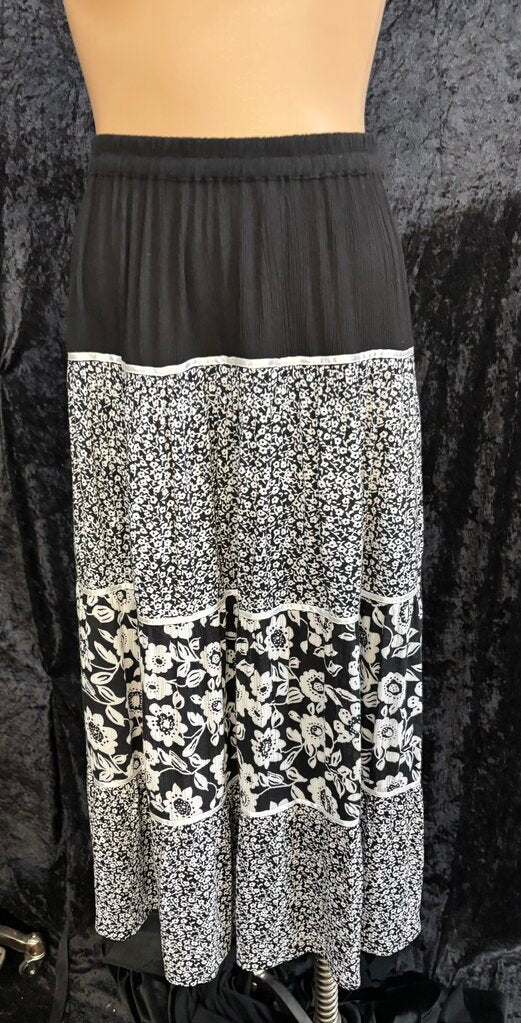 Cathy Daniels elastic waist floral layered long Women's Skirts XL black, white