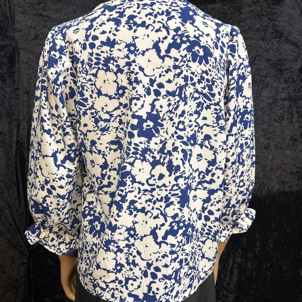 Daily Thread VNeck Quarter Sleeve Floral Women's Shirts M Blue/White