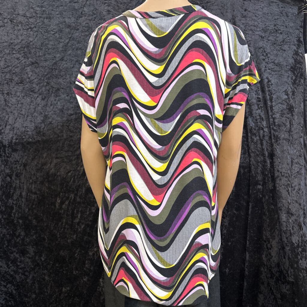 Dana Buchman swirl design sleeveless v neck Women's Shirts XL pink, white, black, yellow