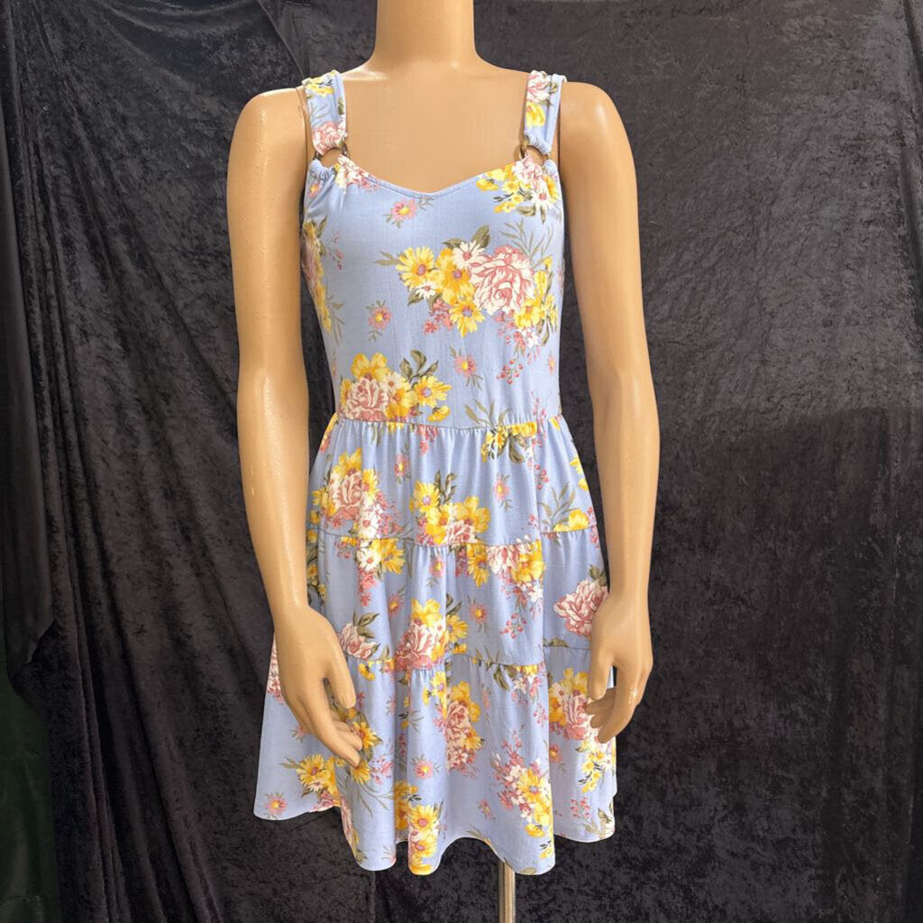 derek heart Floral Mini Women's Dresses Medium Blue/Multi