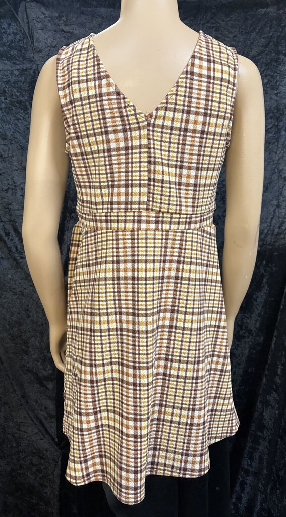 derek heart Plaid Sleeveless Women's Dresses Large Brown/Yellow