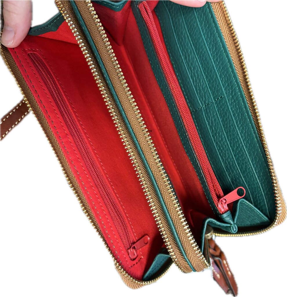 Dooney & Bourke Zip Around Wristlet Women's Designer Handbags Green/ Tan