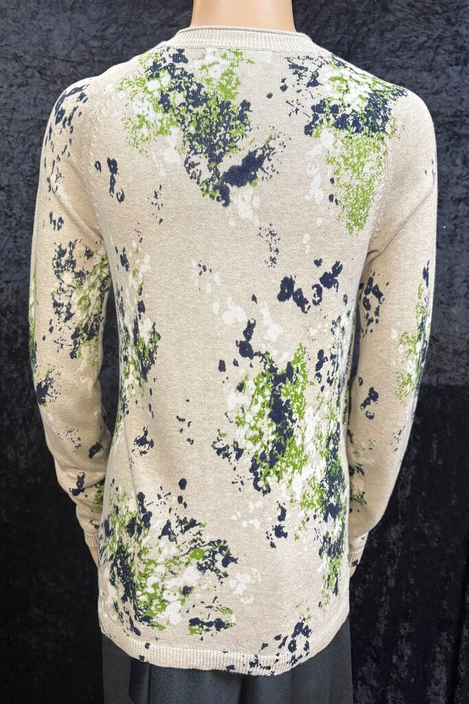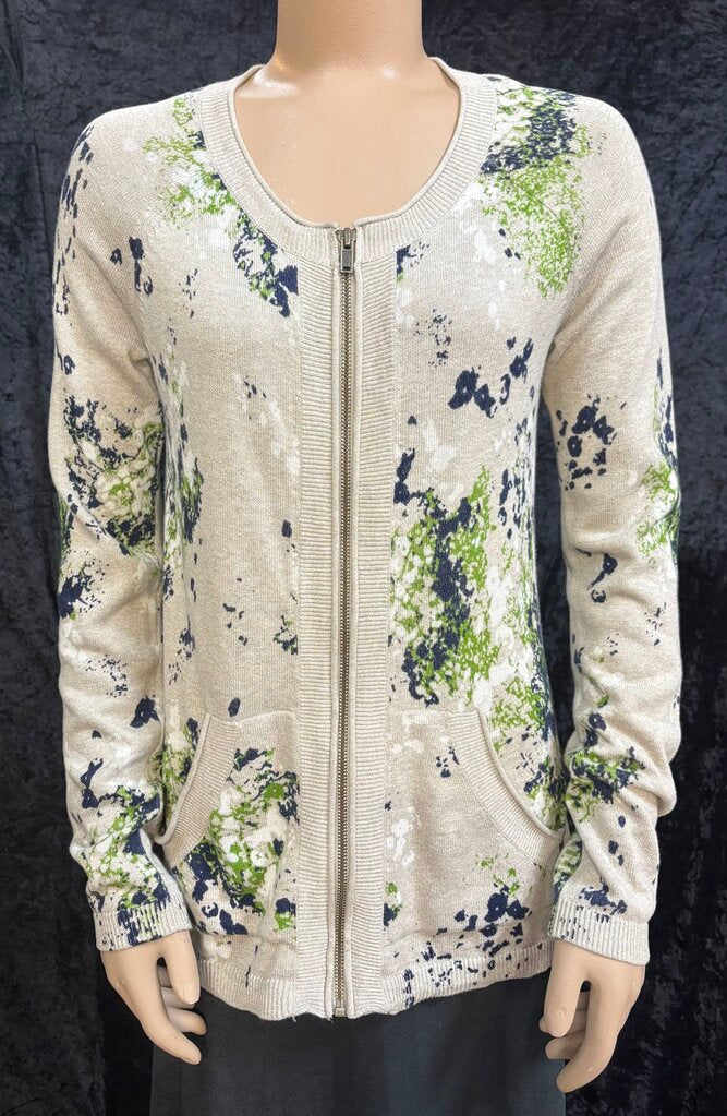 Eddie Bauer front zip splatter color Women's Sweaters small tan/navy