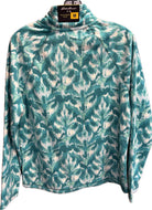 Cozy and stylish women's half zip pullover in a vibrant teal pattern, perfect for layering in cooler weather.