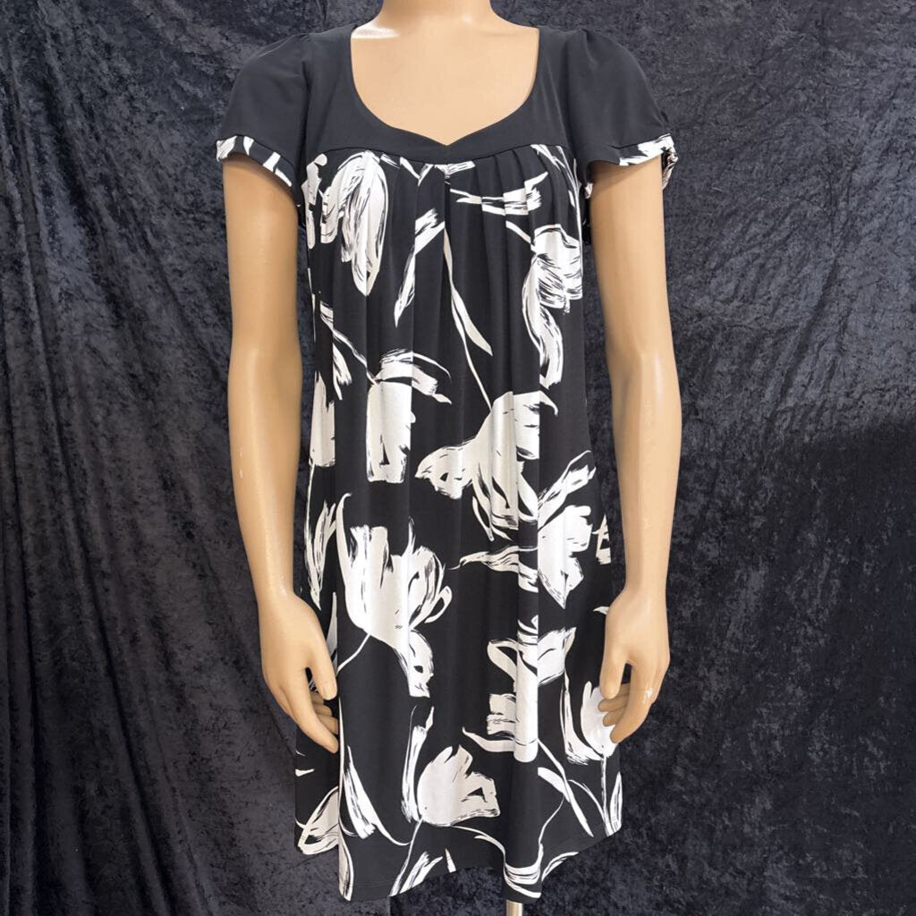 enfocus studio Floral V-Neck Dress Women's Dresses 10 Blk/White