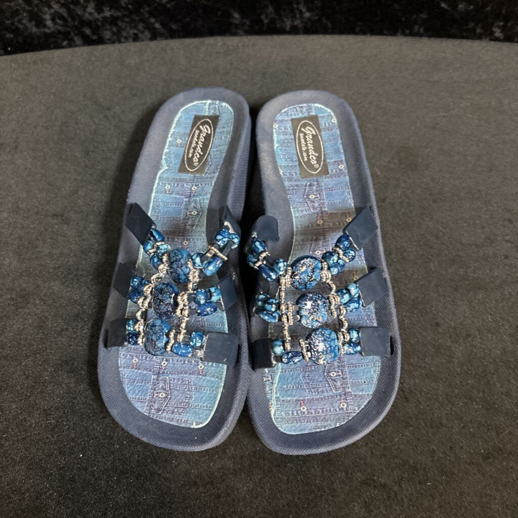 grandco Beaded Flip Flops Women's Shoes 8 Black/Multi