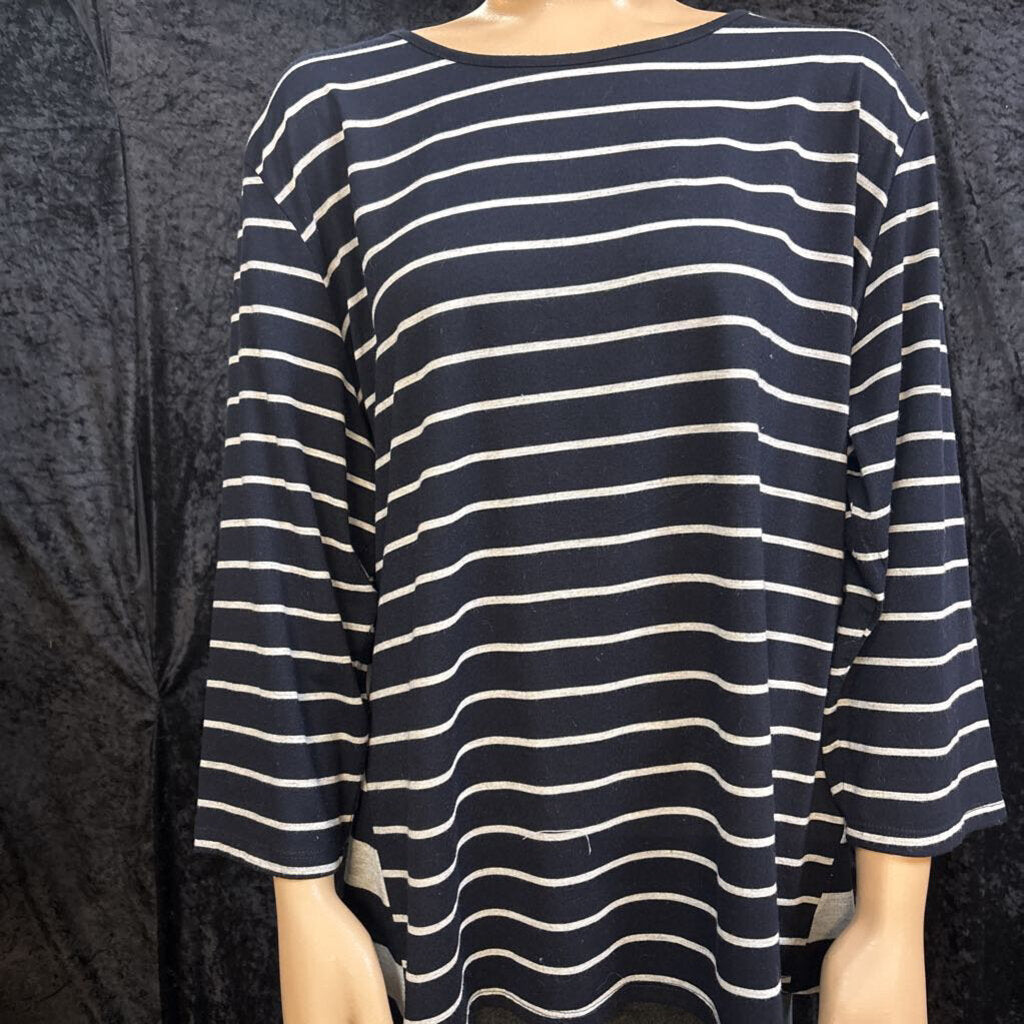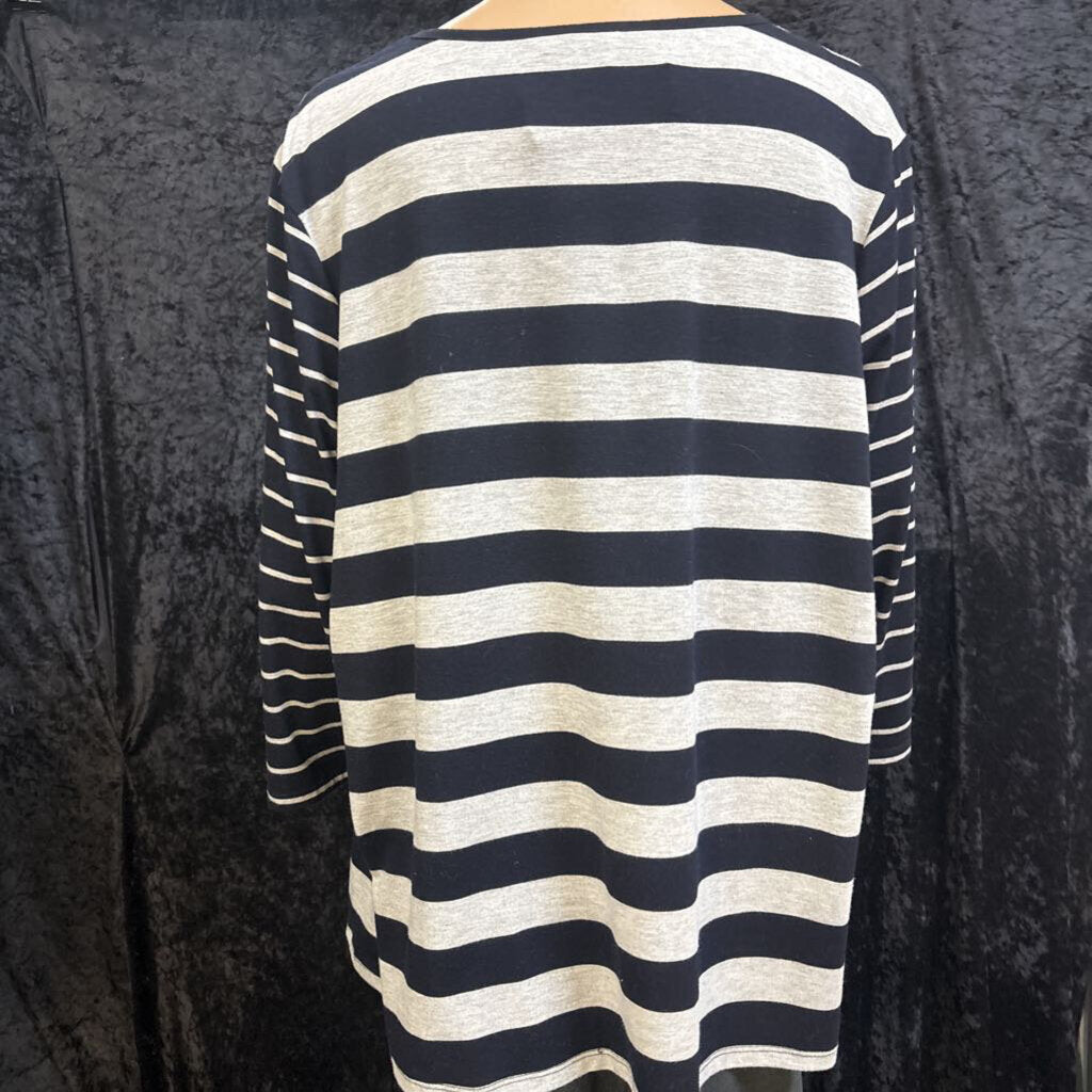 Jane & Delaney 3/4 sleeve with different size stripes Women's Shirts 1X black, gray