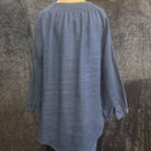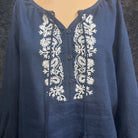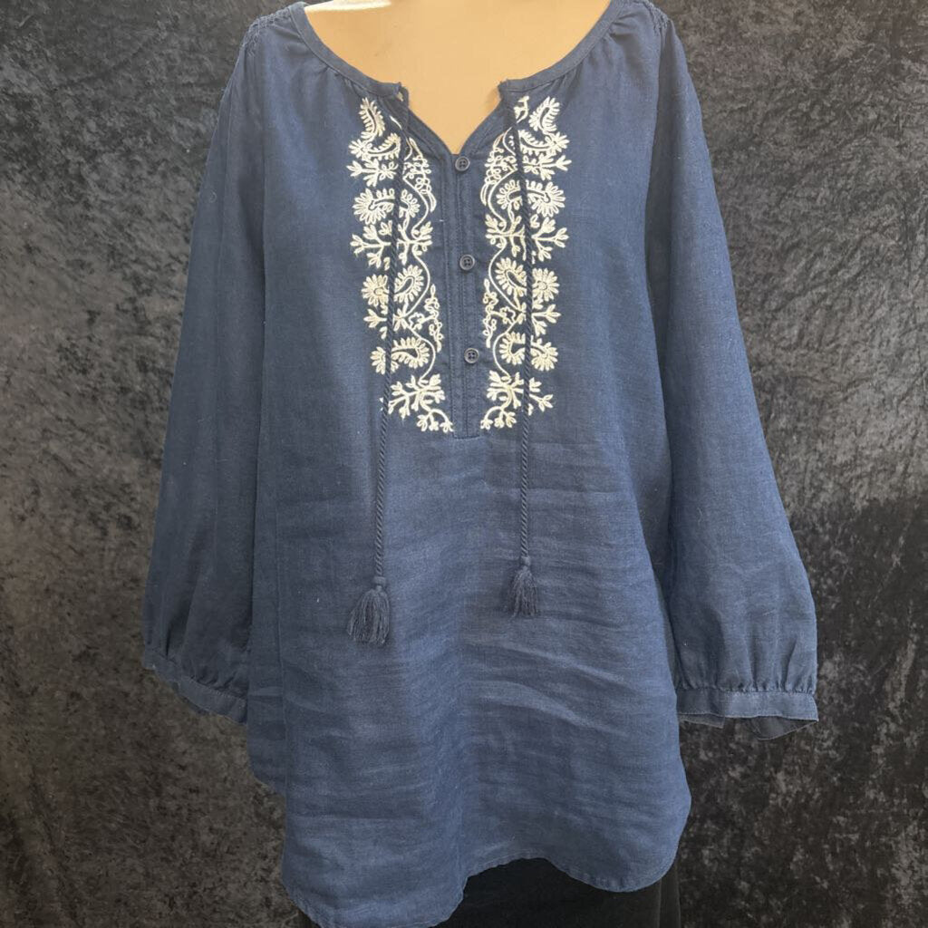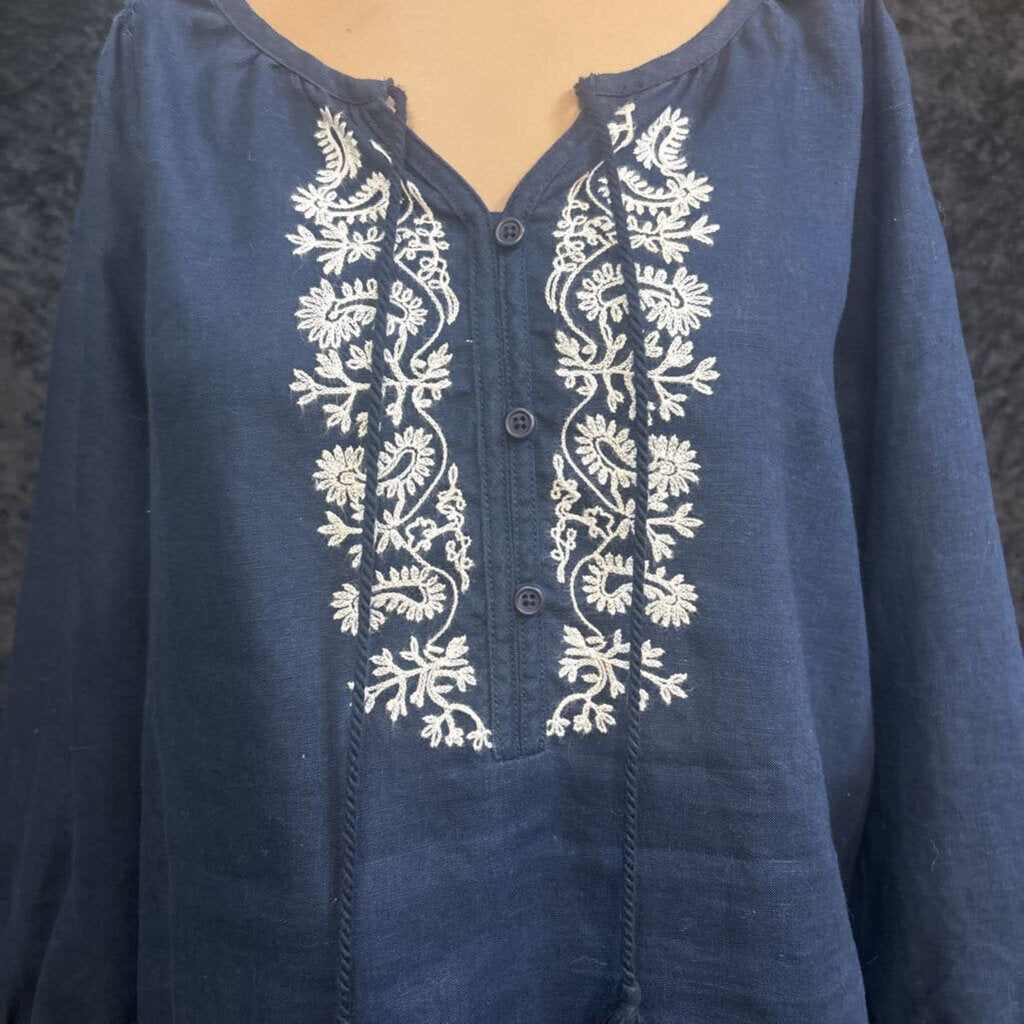 Jones New York 100% linen embroidered with tassel tie Women's Shirts M Navy, white