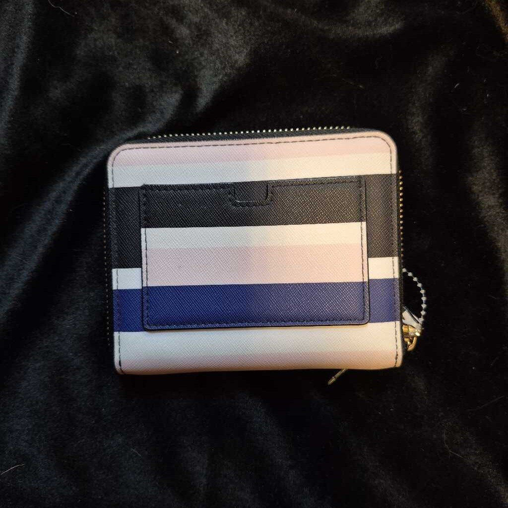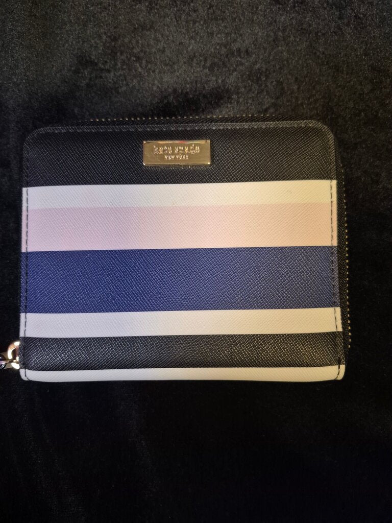 Stylish Kate Spade New York wallet featuring a chic striped design in multicolor, perfect for everyday use.