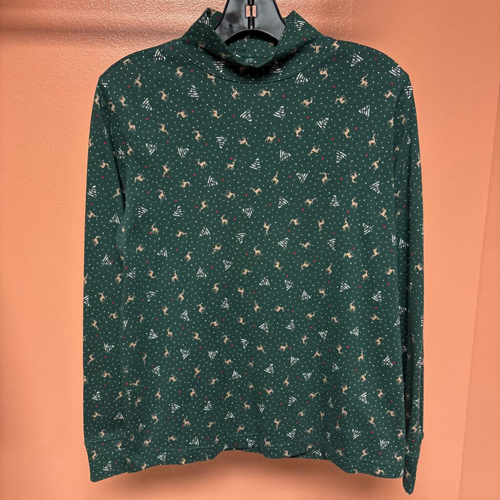 Lands End Christmas Themed Long Sleeve Turtleneck Top Women's Shirts s Green