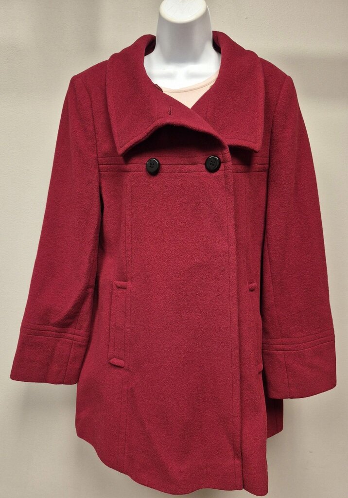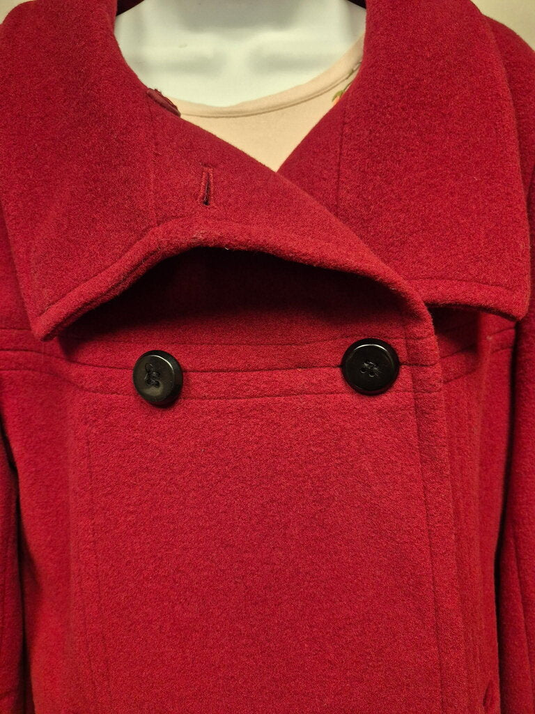 larry levine Fold Over Neck Coat Women's Coats L red