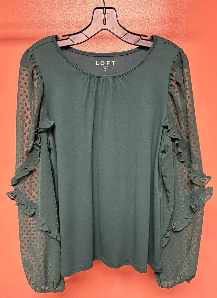 Loft Ruffle Sleeve Blouse Women's Shirts M Green