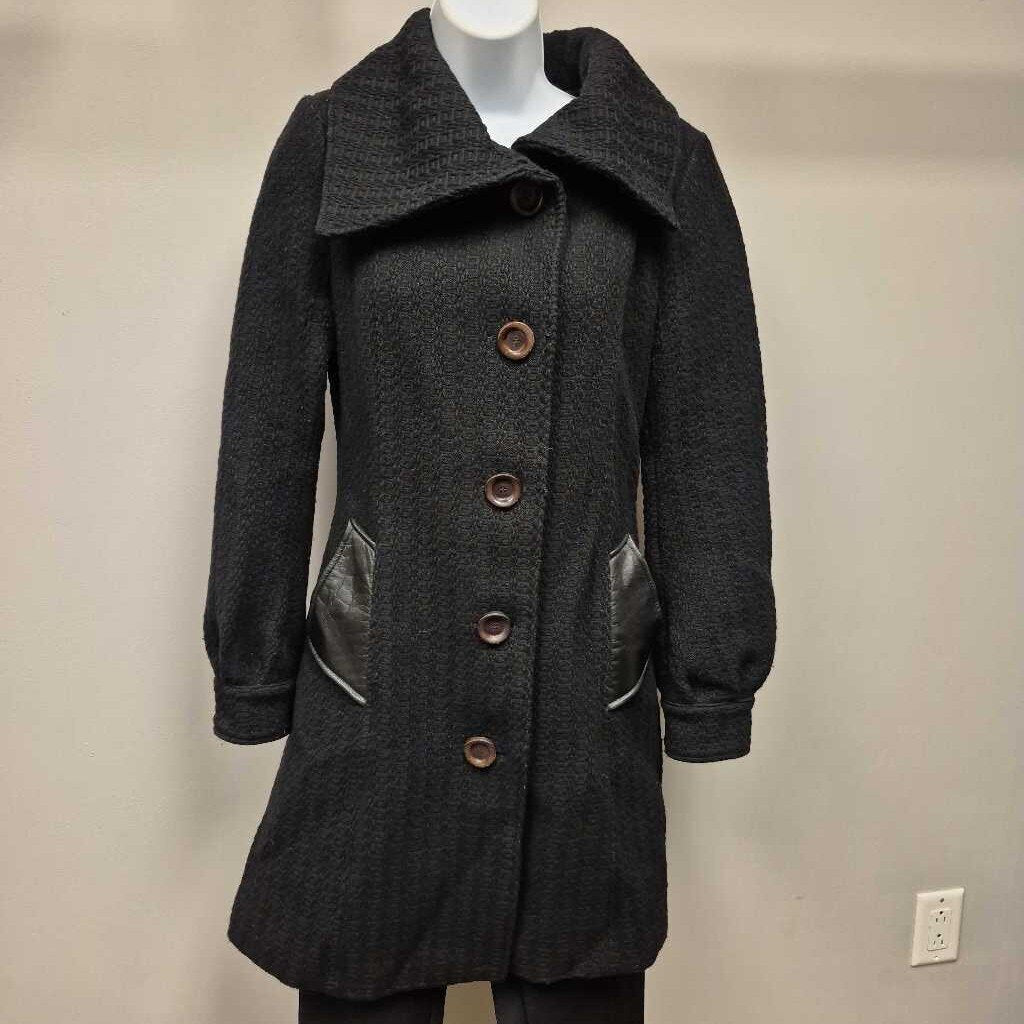 Mackage Wool Coat with Leather Pockets Women's Coats PS Black
