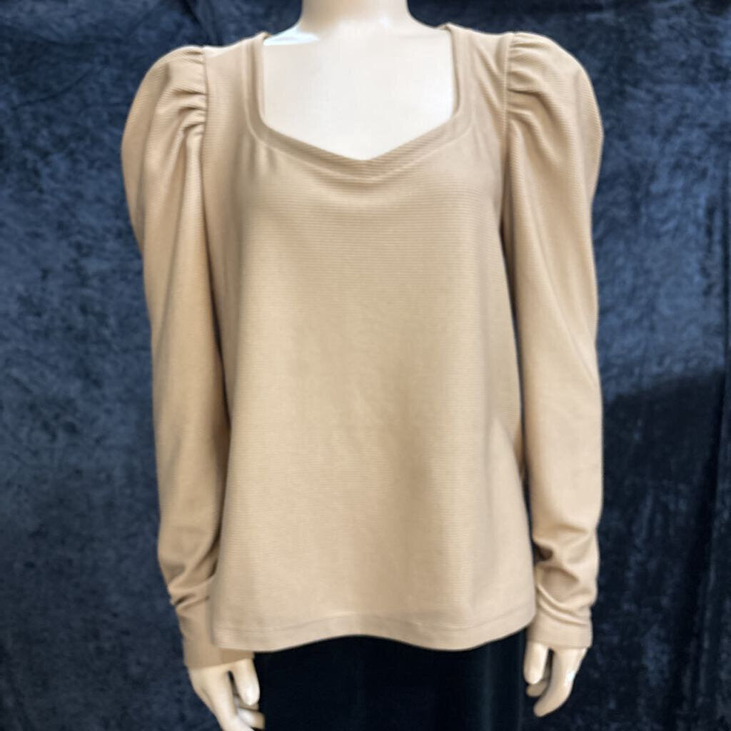 Nine West Ribbed scoop neck long sleeve Women's Shirts L Tan