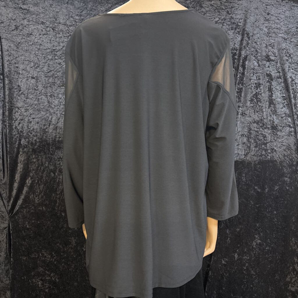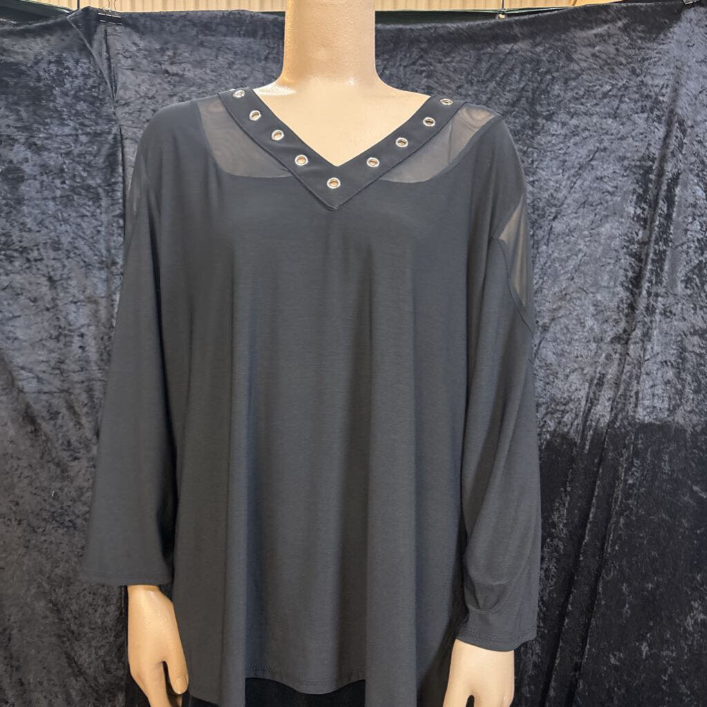 ny collection 3/4 sleeve v neck with grommets Women's Shirts 2X black