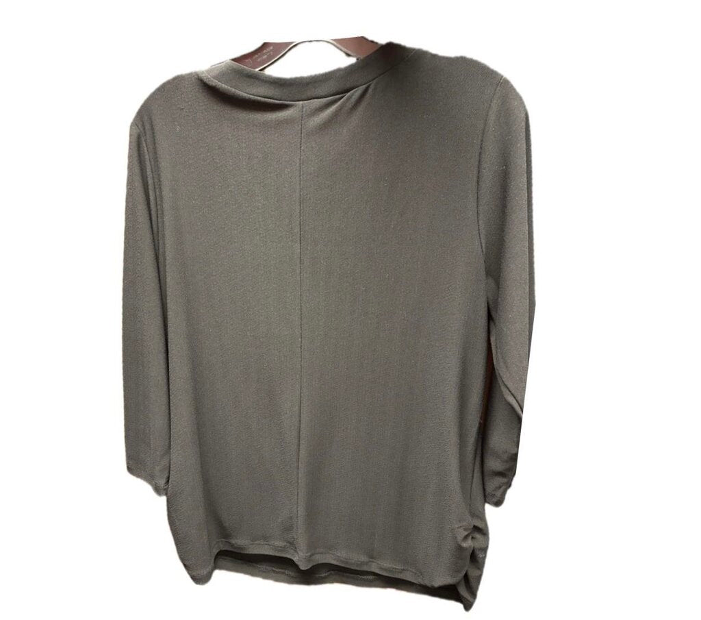 ny collection V-Neck with Zipper Long Sleeve Women's Shirts Petite Large Black