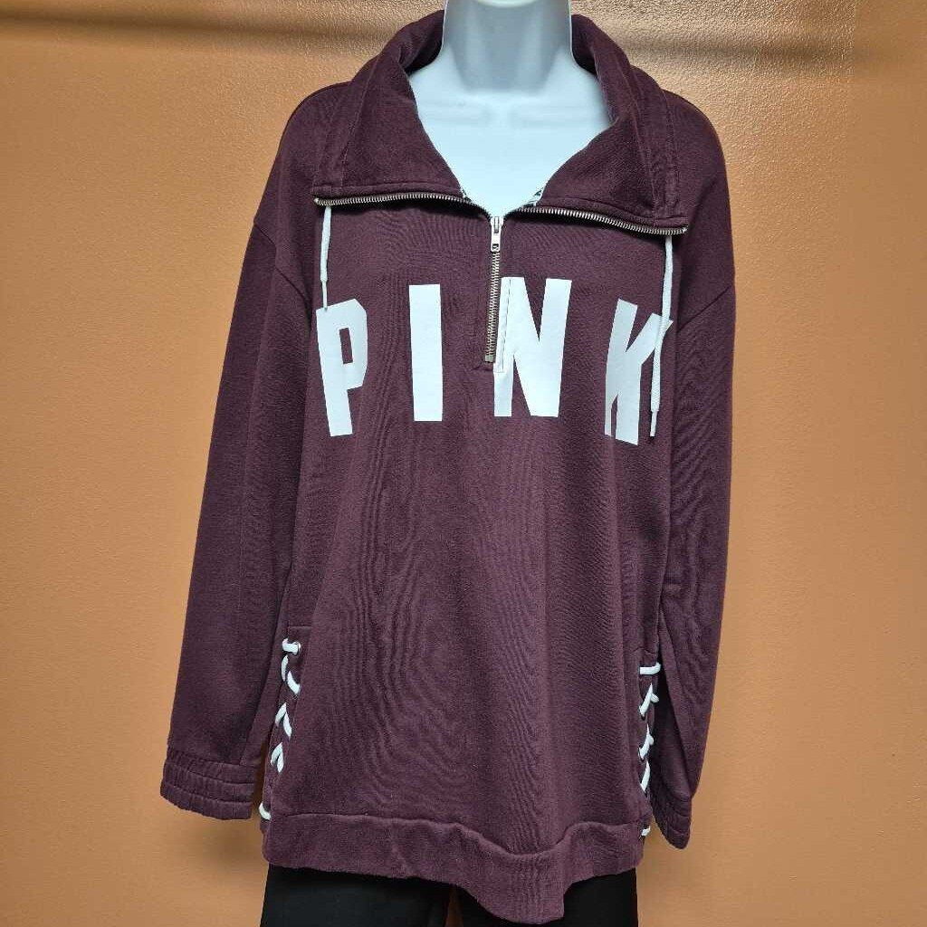 pink Laced Side Pullover Quarter zip Women's Sweatshirts S Red