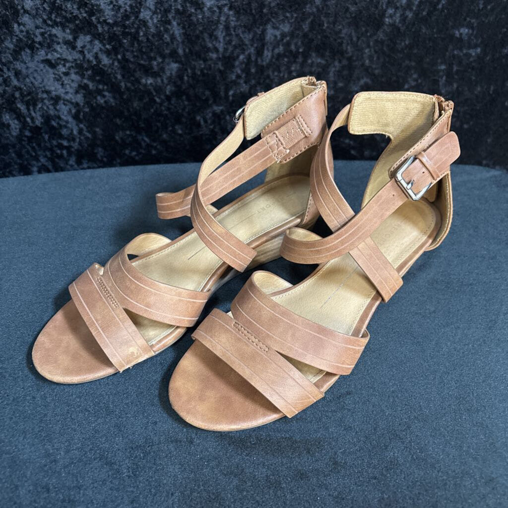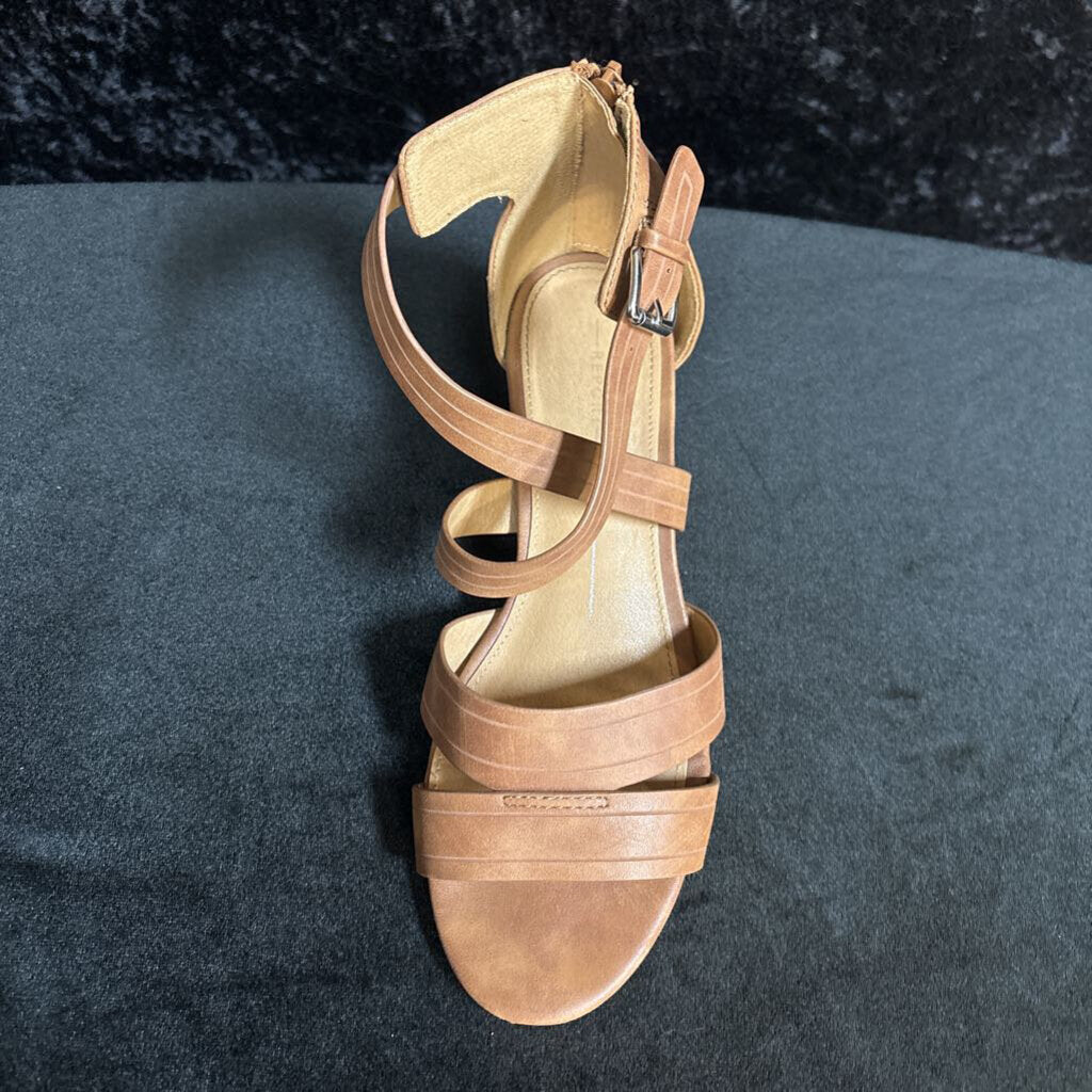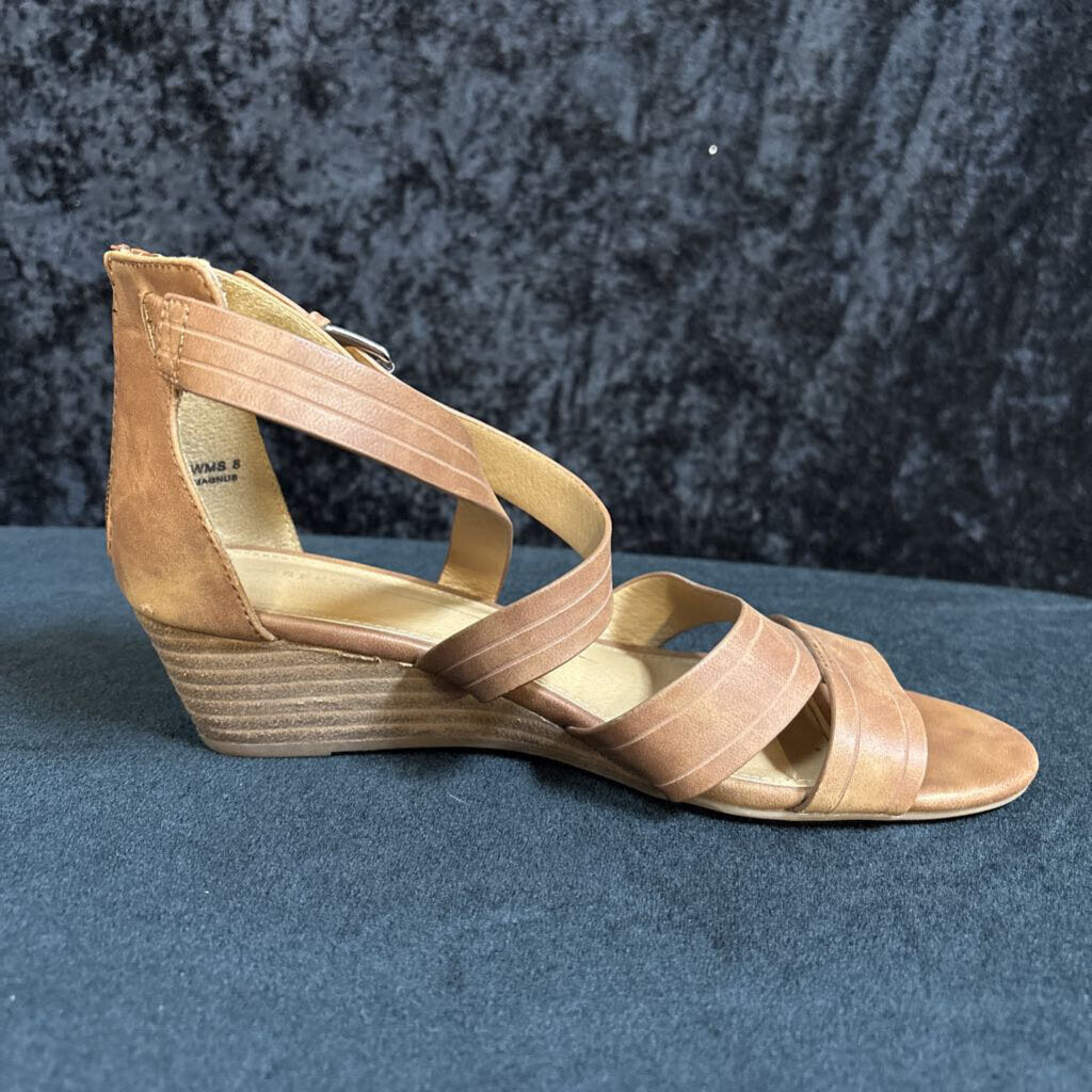 report Leather Wedge Sandals Women's Shoes 8 Brown